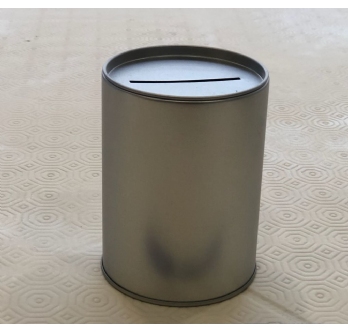 קופת חיסכון מפח מכסה נפתח גודל מוצר: קוטר 8.4סמ ,גובה11.6סמ